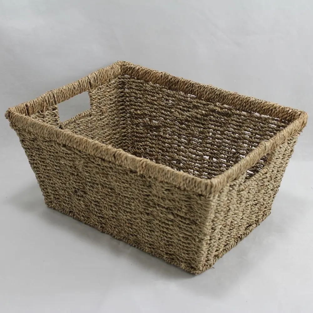 Small Rect Tapered Seagrass Storage Basket Natural 38x28x18.5cm Height
